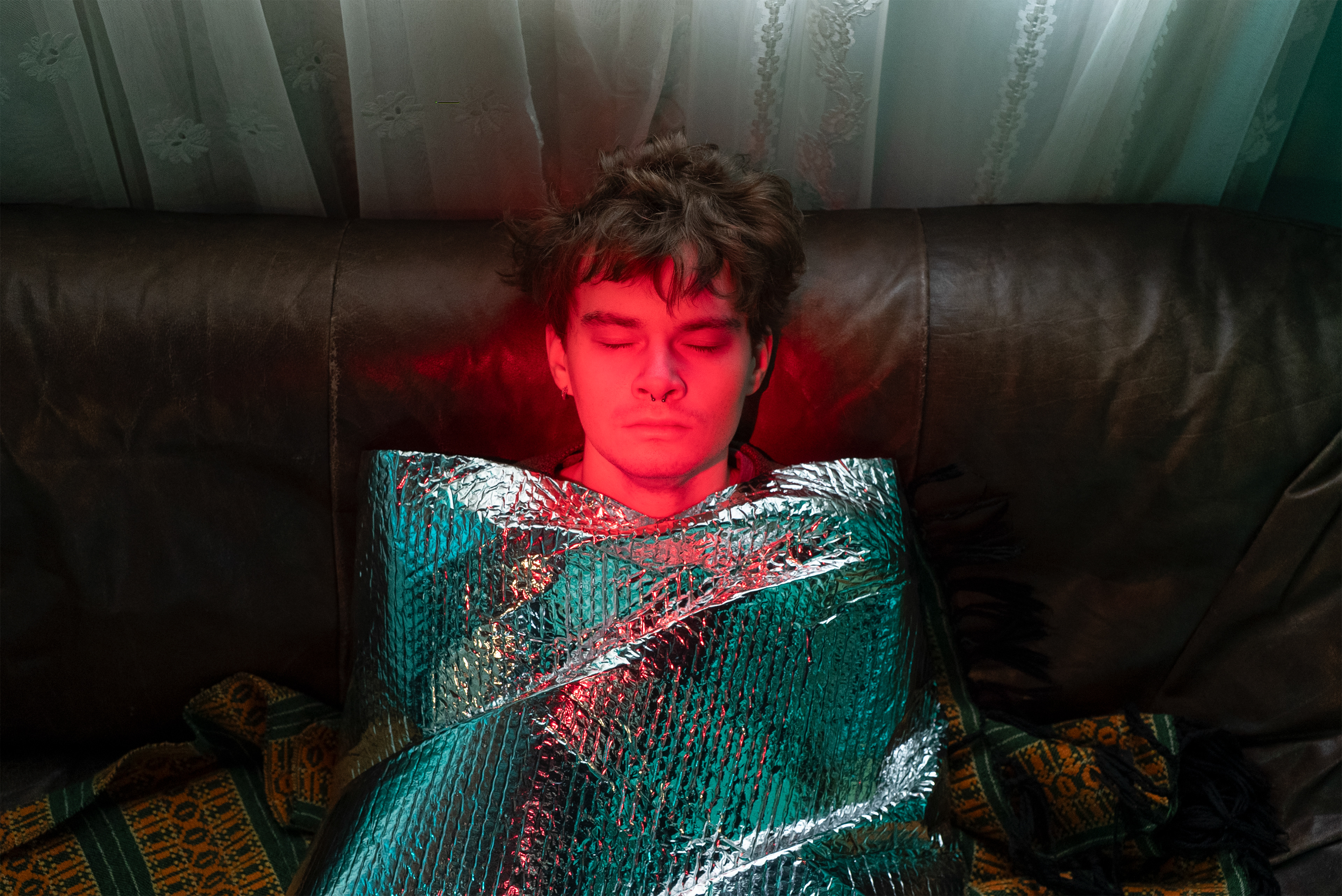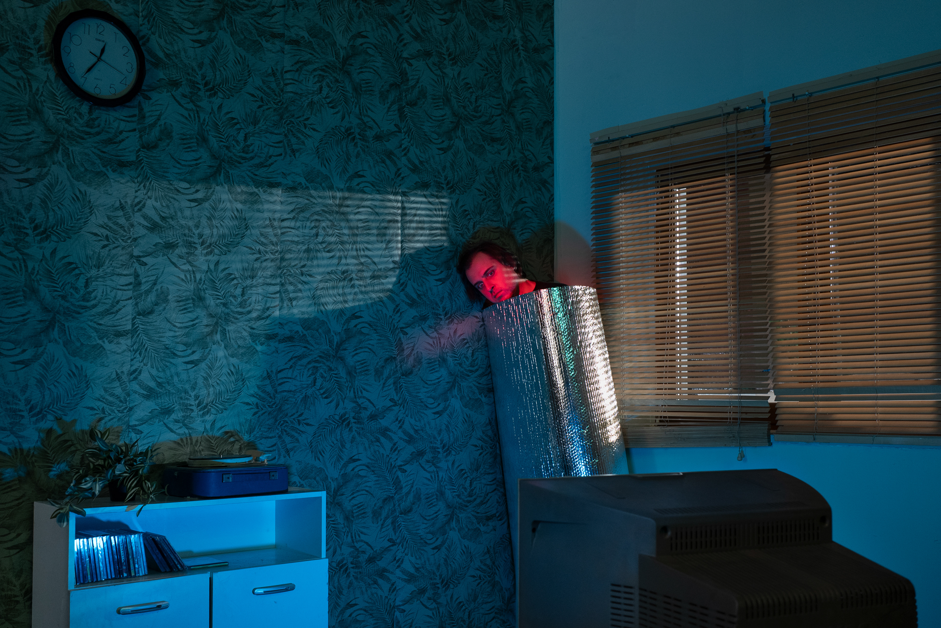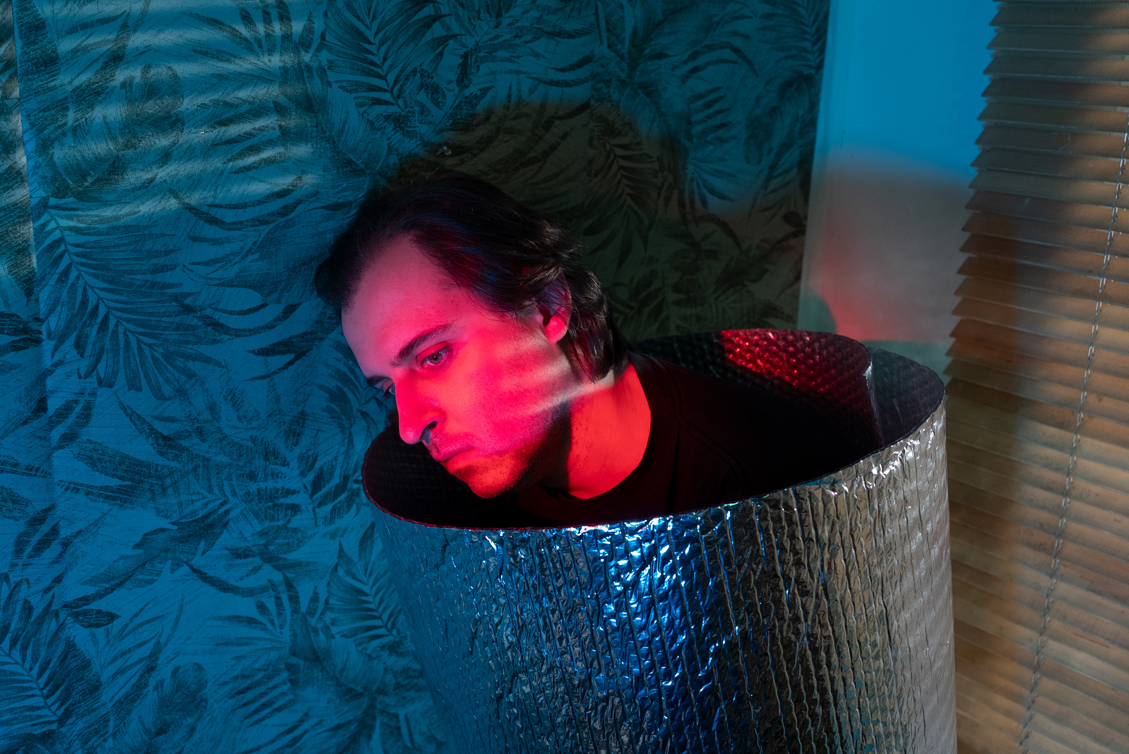 Staged photographic series focused on experimentation with light, color, and form. The human body appears wrapped, isolated, and partially transformed into an object - suspended between presence and absence, personality and depersonalization. The figure evokes associations with a robot, artificial intelligence, or a system placed on hold, waiting for activation. The images reflect a contemporary state of uncertainty, where the boundary between human and non-human becomes increasingly unstable. Identity feels temporary, consciousness paused, as if caught between past definitions and an undefined future. This series explores the tension between control and vulnerability, individuality and erasure, asking what it means to remain human in a time of technological and existential ambiguity.